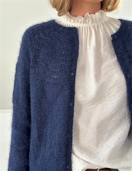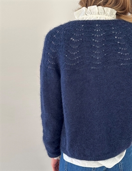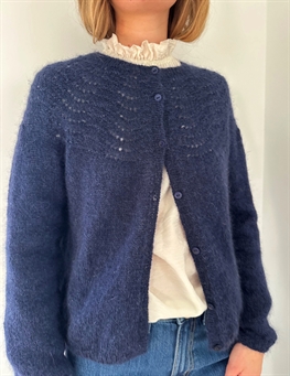 Peacock Cardigan fine strikkes oppefra. Der strikkes vendepinde efter mønsteret for at danne halsudskæringens facon, og samtidig strikkes raglanudtagninger. Når alle raglanudtagninger er strikket, hviler ærmemaskerne og kroppen strikkes færdig frem og tilbage på pinden. Derpå strikkes ærmerne færdige rundt. Til slut strikkes forkanter og halskant, og der sys knapper i.