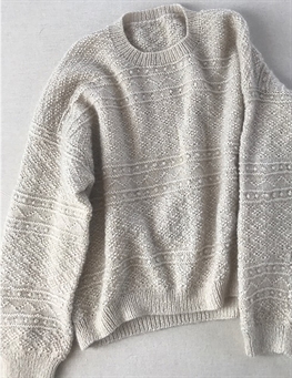 Sandnes Garn Sunday (100% merinould, 50 g = 235 m) strikket sammen med Sandnes Garn Tynn Silk Mohair (57% mohair, 28% silke, 15% uld, 25 g = 212 m).
