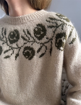 Le Rosie Yoke Blouse est travaillé de haut en bas, en commençant par le cou, qui sera élevé à l’aide de rangs raccourcis à l’allemande (RRA). Vous travaillerez donc à plat, en jersey, lors des rangs raccourcis ( tricotez à l’endroit sur les rangs endroit et à l’envers sur les rangs envers). Outre la section des RRA, le pull se travaille en jersey seulement. Le haut du tricot (yoke) est travaillé avec des augmentations raglan. Le motif en jacquard et les augmentations sont indiqués dans le diagramme.