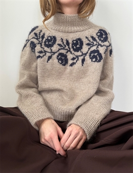 Rosie Yoke Sweater er tænkt til at have et bevægelsesrum på ca. 30 cm. Her er den vist med et bevægelsesrum på 20 cm.